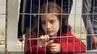 Farah Nabulsi illustrates the daily dehumanization many Palestinians suffer at Israeli checkpoints in“The Present.”  Yusaf Khalid is a young and handsome family man who flirts with his wife as he rushes through breakfast because, he tells her, he needs to go buy her a present for their anniversary and be back in time to make her dinner.  She promises he will get his present when she puts their young daughter to bed early (nod, nod, wink, wink).  He sets off with the little girl, who witnesses her father being harassed by an Israeli guard at the checkpoint, the man thoroughly amused by Yusaf’s statement that he knows the man standing right behind him, Ari.  With a late start, he gets an appliance store owner to agree to help him get his refrigerator delivered that afternoon, but guards will not allow the truck to pass.  Yusaf will face ridiculous obstacles in trying to fulfill a simple task, as will his daughter, who wets herself during their delays.  But it is also the young innocent who solves the made up problems of men who continue to threaten as she and her dad make their way home.  “The Present” tells a simple tale, but a loaded one.  B+