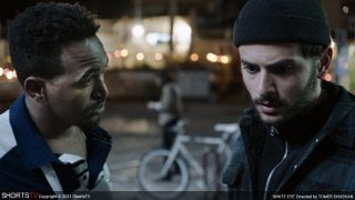 In the single take “White Eye,” Israeli Tomer Shushan uses a stolen bicycle to comment upon an ethical quandary involving an undocumented immigrant.  A man finds a bike locked on a street corner and calls the police to report he has just found his bike that was stolen a month earlier.  He is sure it is his because of a specific fender dent and a purple heart decal.  A nearby laborer offers to break the lock for a fee, but disappears when the police arrive.  They claim they have no record of the bicycle’s theft and tell him to wait for its owner to arrive and call them back.  That man turns out to be an Eritrean who insists he bought the bike outside a bus station.  The police return and demand his papers.  Shushan capably pulls off the single take over 21 minutes, although it adds nothing to his story.  Better is the way he’s tipped his hat to Italian neorealism and the Old Testament tale of King Solomon and the baby in exploring his moral conundrum.  B