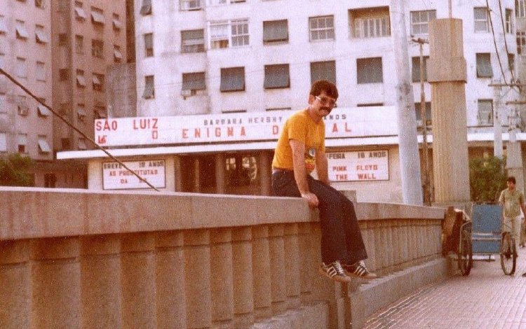 Marquees are time capsules, we are told, as many stills, like one featuring the director in his youth, are dated based on the movies emblazoned upon them. After a tribute to projectionist Alexandre Moura, a close friend who died in 2002, and some lost history about a building full of Hollywood distributors, Filho showcases the Cinema Sao Luiz, a palace made up like a tent from the time of the Crusades, its stained glass fleur de lis on either side of the screen hinting at a place of worship. This cinema, located at the end of the Boa Vista Bridge, is still in operation today