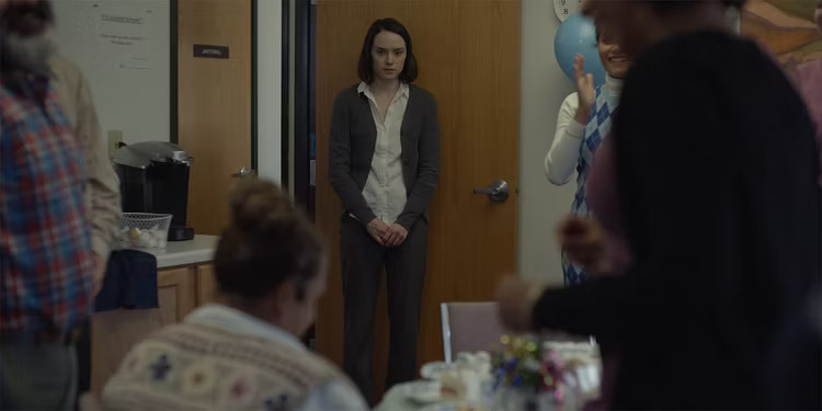 Fran (Daisy Ridley) lives a quiet, isolated life and keeps to herself at work. When a new hire, Robert (Dave Merheje), comes on board, he thinks that his new colleague is funny. This leads to a date and totally uncharted territory for the young woman in "Sometimes I Think About Dying."