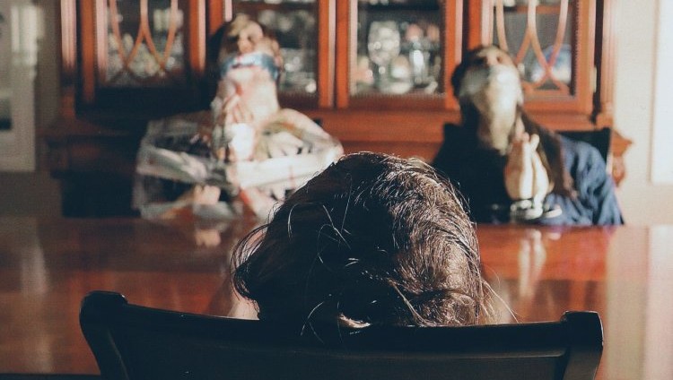 Sitting off center in front of the gray swirl background favored for television interviews, Det. Joe Kirby (Peter Zizzo, HBO's 'Duster') of San Bernadino County tells us that he's never seen anything like what happened to the Sheridan family, discovered bound, arranged around their dining room table and bled dry, a mysterious symbol painted in their blood in the double height ceiling above them. What disturbed he and his partner Det. Alexis 'Lexi' Taylor (voiceover specialist Terri Apple) even more, though, was they recognized this as the return of an uncaught serial killer from the early 90's who had been reaping a "Strange Harvest."